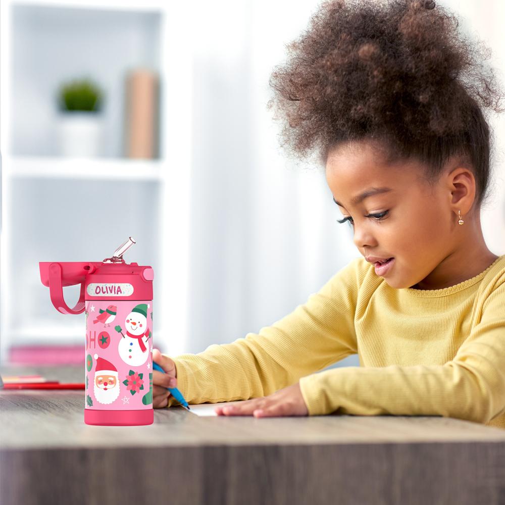 12oz FUNTAINER? WATER BOTTLE PINK SNOWMAN