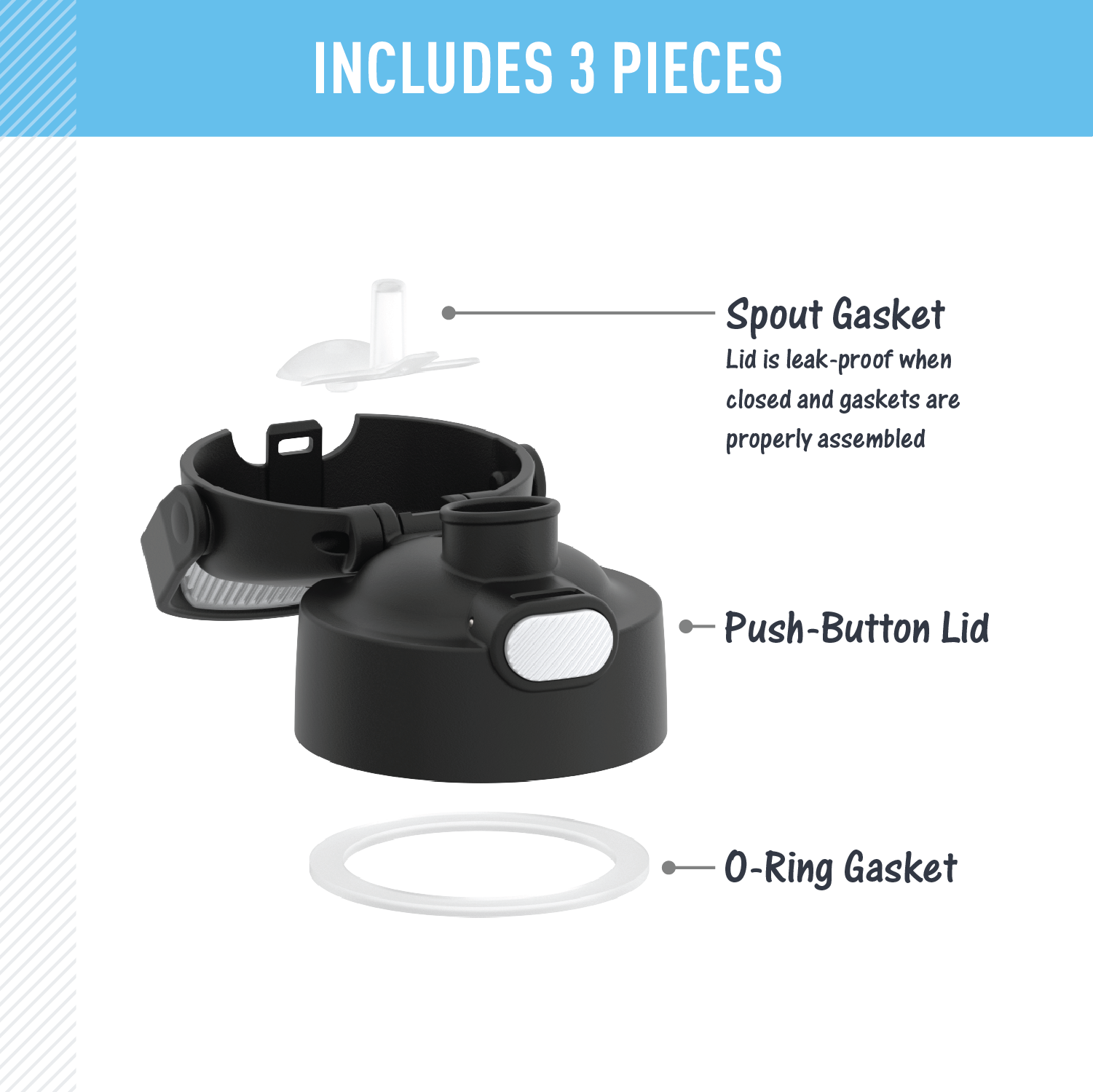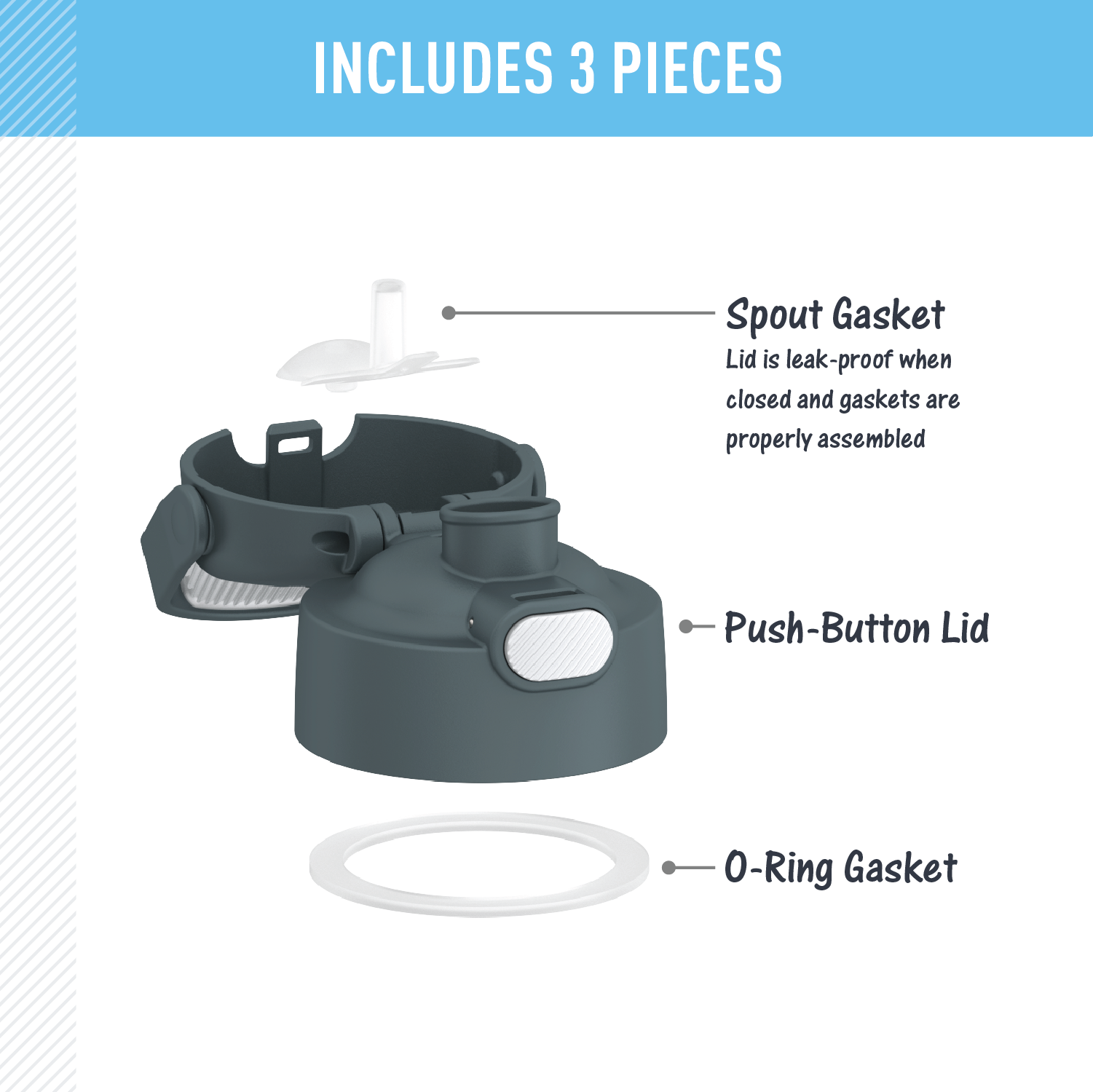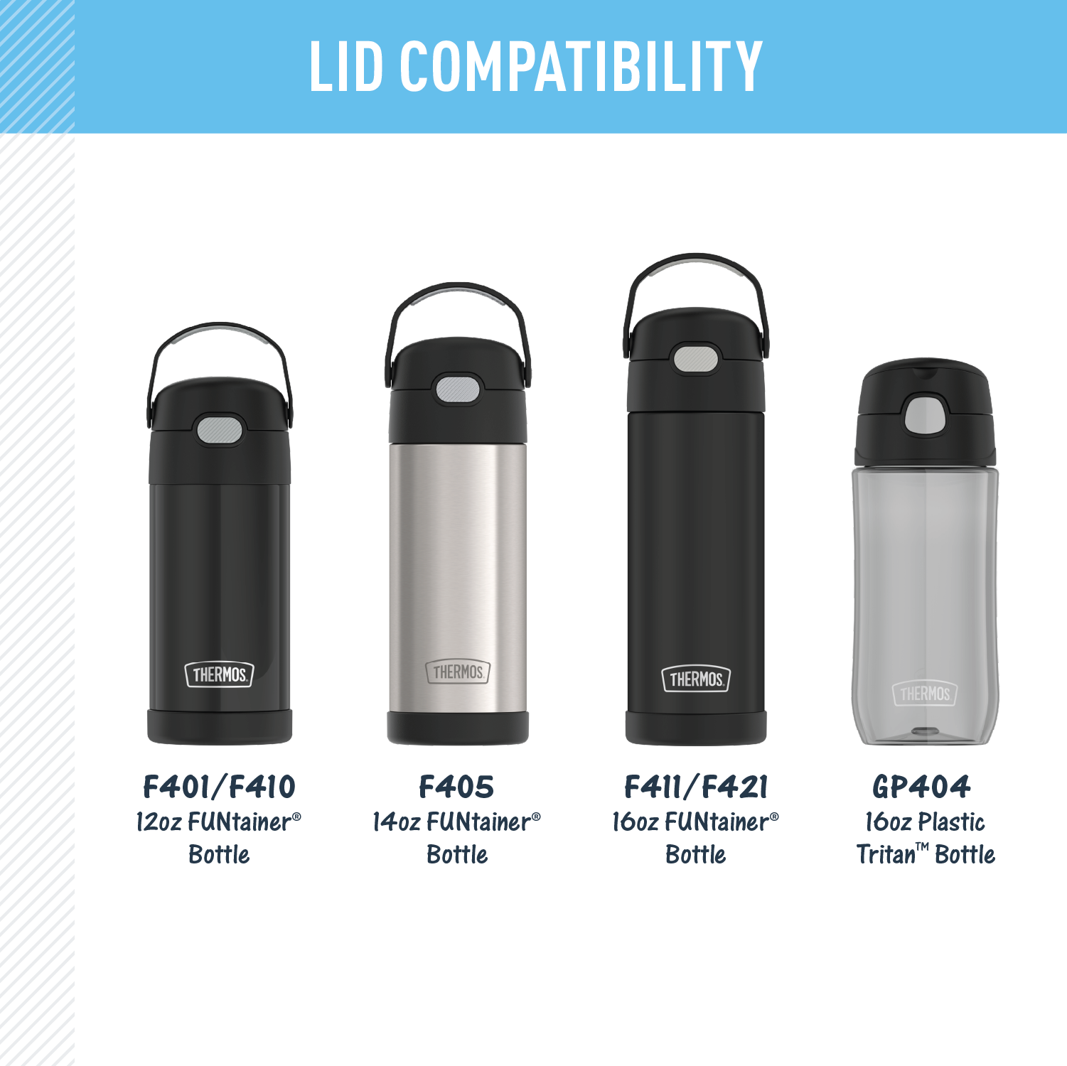 This FUNtainer? water bottle replacement spout lid is a convenient way to replace current lids or to swap out a lid for a clean one between washings. Compatible with: F401/F410. F405. F411/F421 and GP404 products. This replacement lid is not compatible with a straw. since it has a spout.